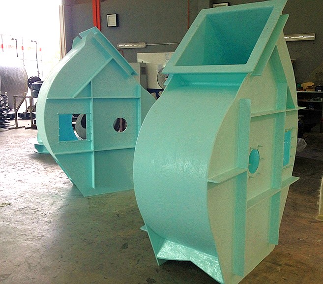 POLYDAMIC fabricates high performance FRP centrifugal fans, widely recognized as among the most effective exhaust fan solutions available. Engineered with both the housing and impeller constructed entirely from fiberglass-reinforced plastic (FRP), these fans deliver exceptional resistance to chemicals and corrosive gases, making them ideal for demanding industrial environments.